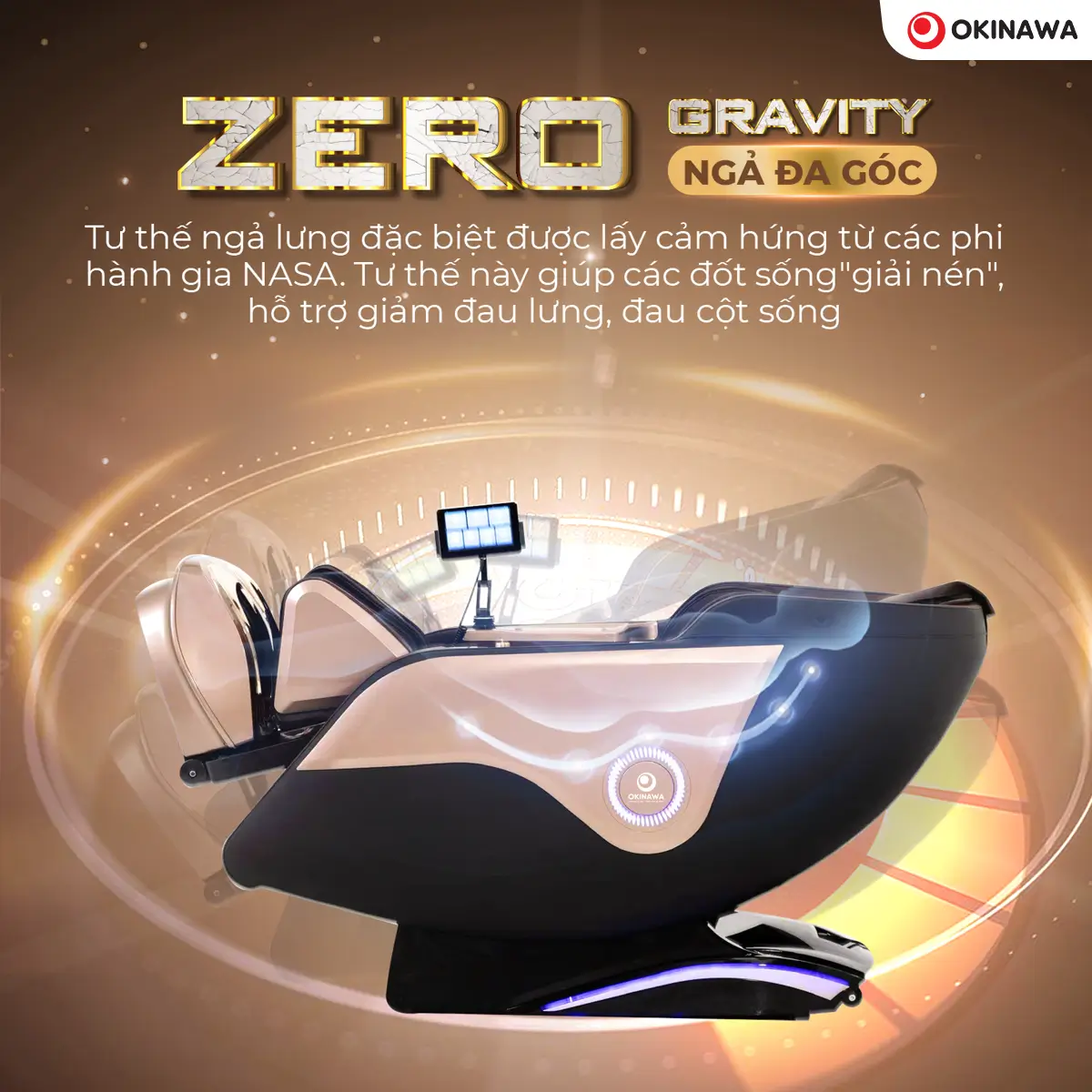 Tư thế không trọng lực (Zero Gravity) được lấy cảm hứng từ các phi hành gia NASA giúp cơ thể giải nén đốt sống và giảm áp lực lên cột sống, đặc biệt là vùng lưng dưới. Tư thế này mang lại sự thư giãn sâu, giúp giảm đau lưng, căng cơ, và các vấn đề về cột sống.