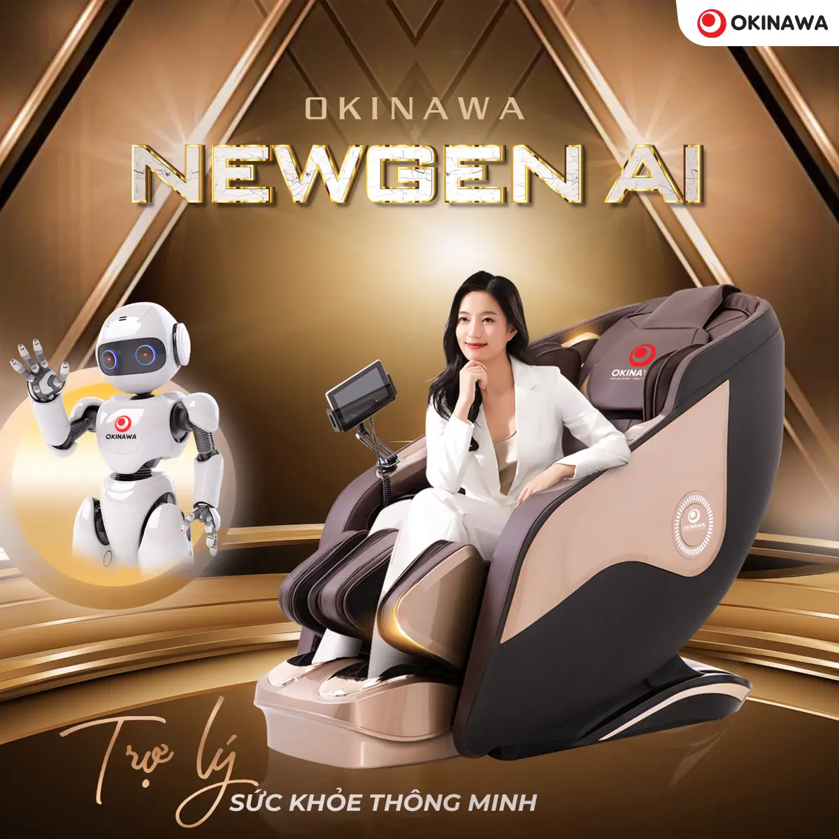 Với thiết kế sang trọng, tính năng massage thông minh và tiện ích vượt trội, ghế massage Okinawa NEWGEN AI chính là trợ lý sức khỏe thông minh tại nhà, giúp bạn thư giãn, phục hồi và tái tạo năng lượng mọi lúc, mọi nơi