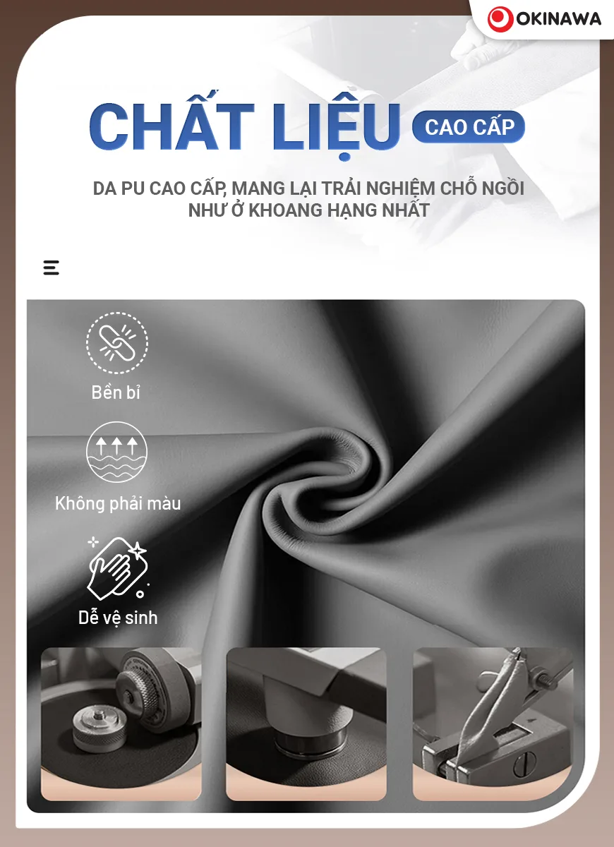 Chất liệu da PU cao cấp và thiết kế hiện đại với điều khiển cảm ứng và sạc không dây mang lại sự tiện lợi tối đa. Đây là lựa chọn lý tưởng để chăm sóc sức khỏe, giảm căng thẳng và mệt mỏi cho gia đình.