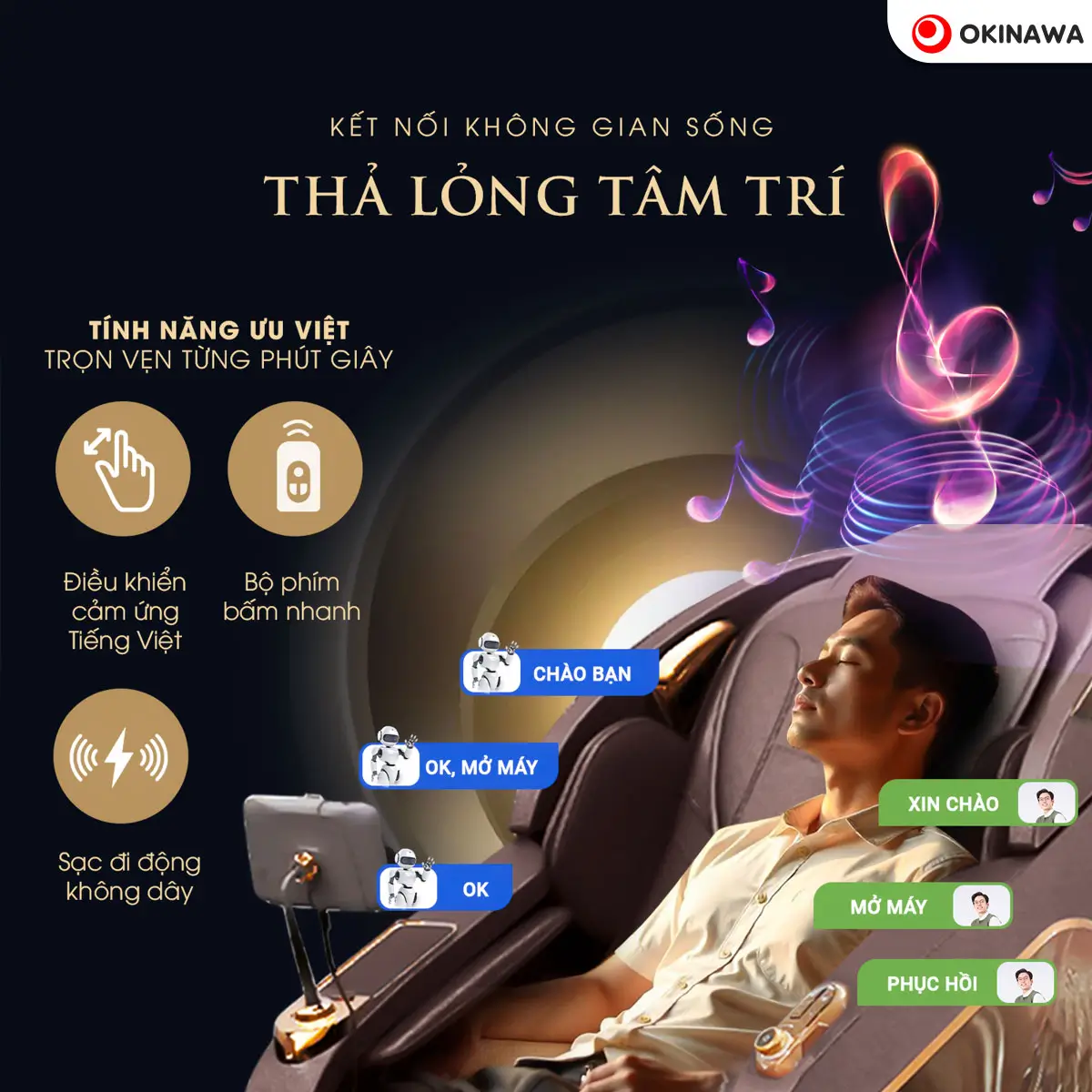 Kết nối sống hiện đại – Thư giãn không giới hạn Venus OS-640 không chỉ nâng tầm trải nghiệm massage mà còn kết nối công nghệ thông minh, mang lại sự tiện ích tối đa cho người sử dụng.