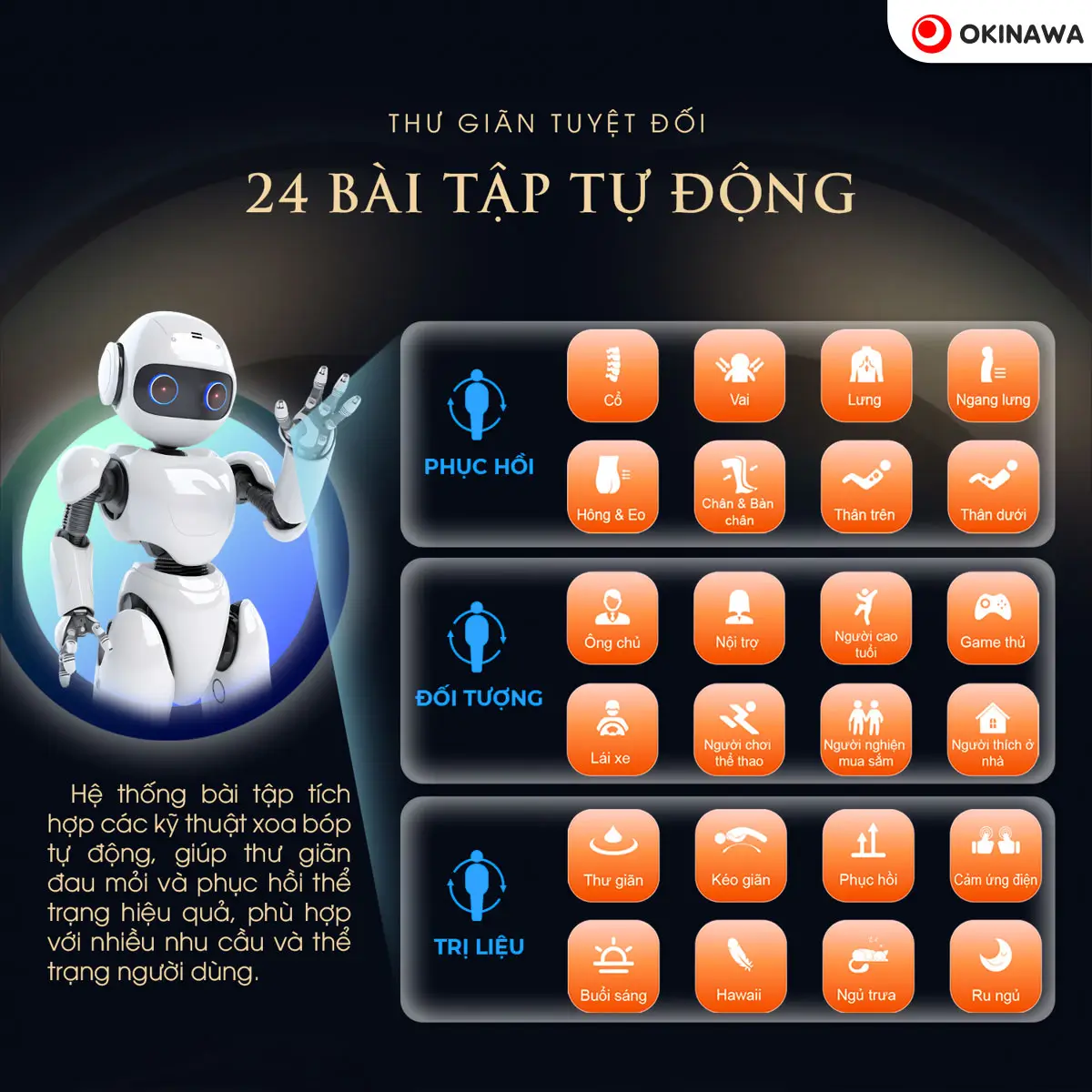 24 chế độ massage tự động – Phù hợp mọi nhu cầu thể trạng