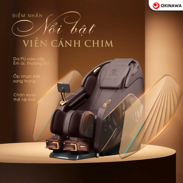 Thiết kế này không chỉ mang lại vẻ đẹp tinh tế, sang trọng mà còn tạo ra cảm giác mềm mại và đầy đặn cho chiếc ghế. Viền cánh chim không chỉ là chi tiết trang trí, mà còn làm tăng thêm tính thẩm mỹ cho không gian sống của bạn, giúp ghế massage trở thành điểm nhấn ấn tượng trong bất kỳ phòng khách, phòng làm việc hay phòng ngủ.